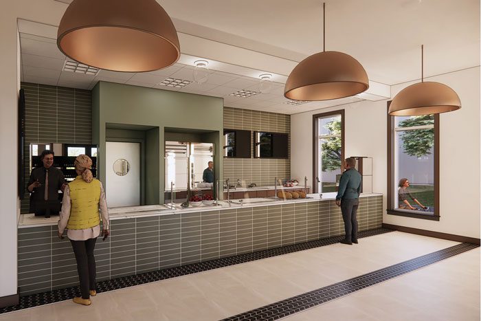 For a more casual experience, a light-filled café will introduce a fresh and flexible dining option available to all campus residents. Natural finishes, subtle tile accents and bronze light fixtures will give the space a tasteful, contemporary character while maintaining Butterfield’s signature warmth.