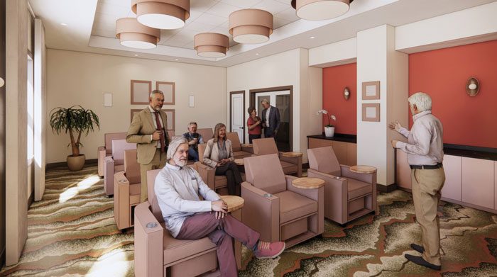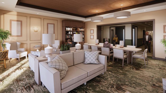 The expansion will also house the marketing department and business office staff, providing convenient access and streamlined support for both current and prospective residents and their families. These spaces will balance functionality with privacy, while maintaining the same polished, welcoming aesthetic found throughout the building.